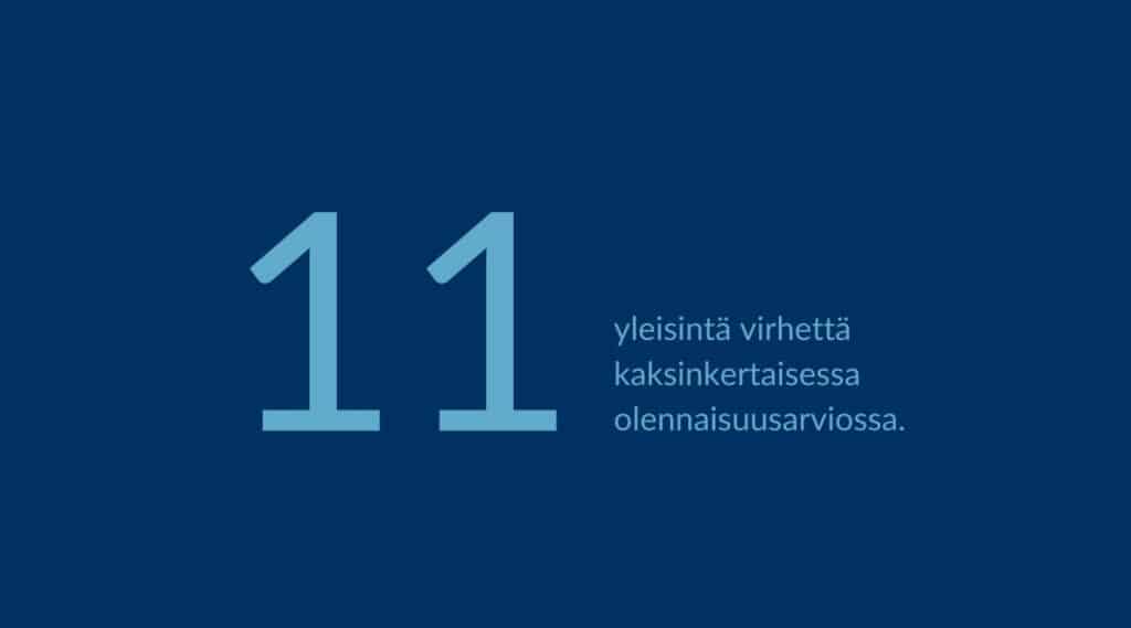Samalla me, jotka kaksinkertaisia olennaisuusarviointeja olemme tehneet, olemme oppineet kantapään kautta, mitä kannattaa tehdä ja mitä ei. Jotta kaikkien ei tarvitsisi tehdä samoja mokia, tässä lista yleisimmistä virheistä, joihin olemme itse sortuneet ja joissa olemme huomanneet muidenkin kompuroineen.
